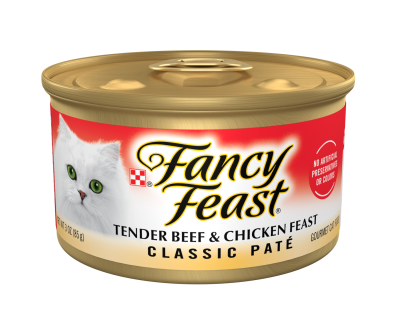 Fancy Feast Classic Tender Beef & Chicken Feast is formulated to meet the nutritional levels established by the AAFCO Cat Food Nutrient Profiles for maintenance of adult cats.